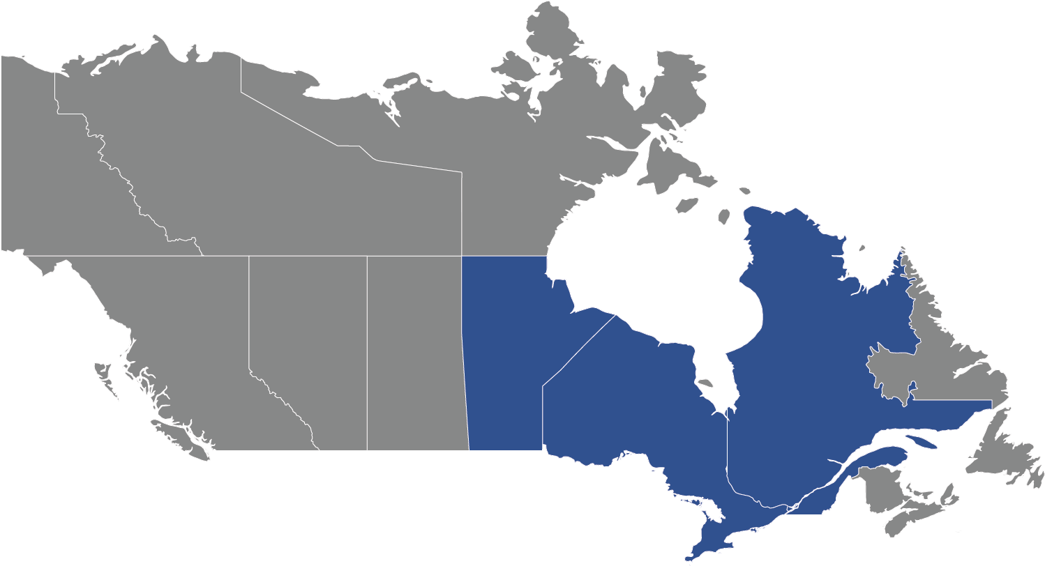 Territories: Manitoba (Eastern Region), Ontario, and Québec